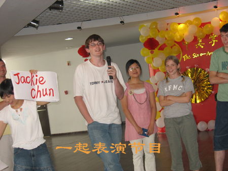 万木展枝吐新绿,栀子飘香迎宾客。 5 月 24 日 ,由北美中国教育交流协会( CEE )主任 Myrrl Byler 带领的美国弗吉尼亚州东门诺大学( EMU )学生团一行 18 人 到我院进行为期五天的参观访问,并于 5 月 24 日 参加了由asia28365.com主办的中美学生文化交流会、联欢会。 交流会于上午在东校区南一教室举行。外语系部分 领导及教师 出席了交流会。会上,我系 5 名学生代表分别对中国服饰、传统乐器和节日等极具特色的中国文化作了简要生动的介绍。美国学生也讲述了他们的大学生活并以饱满的热情学包饺子、用筷子夹弹珠,活跃了会场气氛。在下午举行的联欢会上,中美学生在太阳城圆形舞台欢聚一堂,畅所欲言。在这里,刚柔并济的太极、虎虎生威的双截棍、活力四射的健美操、婀娜轻盈的舞姿、激越高昂的歌声以及美国学生的吉他等各类乐器的精彩演奏博得了阵阵喝彩。中美学生单词竞猜互动游戏更是将联欢会推向高潮,双方文化的交融更进一层。灯光辉映着张张笑脸,音乐传递着声声祝福,联欢会在持续两小时后圆满结束。此外,访问团还在我系师生的陪同下参观了宿舍、教室、校园, 浓厚的学习氛围、现代化的教学设施、优美的环境以及 我系 学生良好的英语专业素质给他们留下 了美好的印象。篮球场上,中美学生一起奔跑,一起呐喊,一起欢呼,没有语言和国度之分,只有欢声笑语在传递。最后,访问团与我系师生合影留恋。 该团的到访促进了中美大学生的友谊,开辟了我系加强国际交流的新篇章,对我院扩大国际影响起了巨大的推动作用。