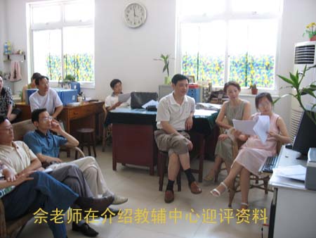 2006年7月26日,在外语系办公室举行了教辅中心迎评材料汇报会。会上中心副主任佘老师详细地介绍了材料情况,结合幻灯片为各位老师展示了教辅中心的现状。参加会议的杨主任及各位老师也为迎评材料中存在的不足提出了自己的意见和建议。佘老师在虚心听取意见后表示一定会改善材料中的不足将迎评材料做得更好更完善。